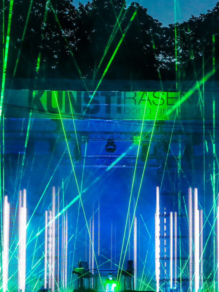 Der KUNST!RASEN ist die Bonner Sommerbühne, zentral und sehr idyllisch direkt am Rhein gelegen. Hier finden zwischen Juni und August Veranstaltungen für bis zu 10 000 Besuchern statt.